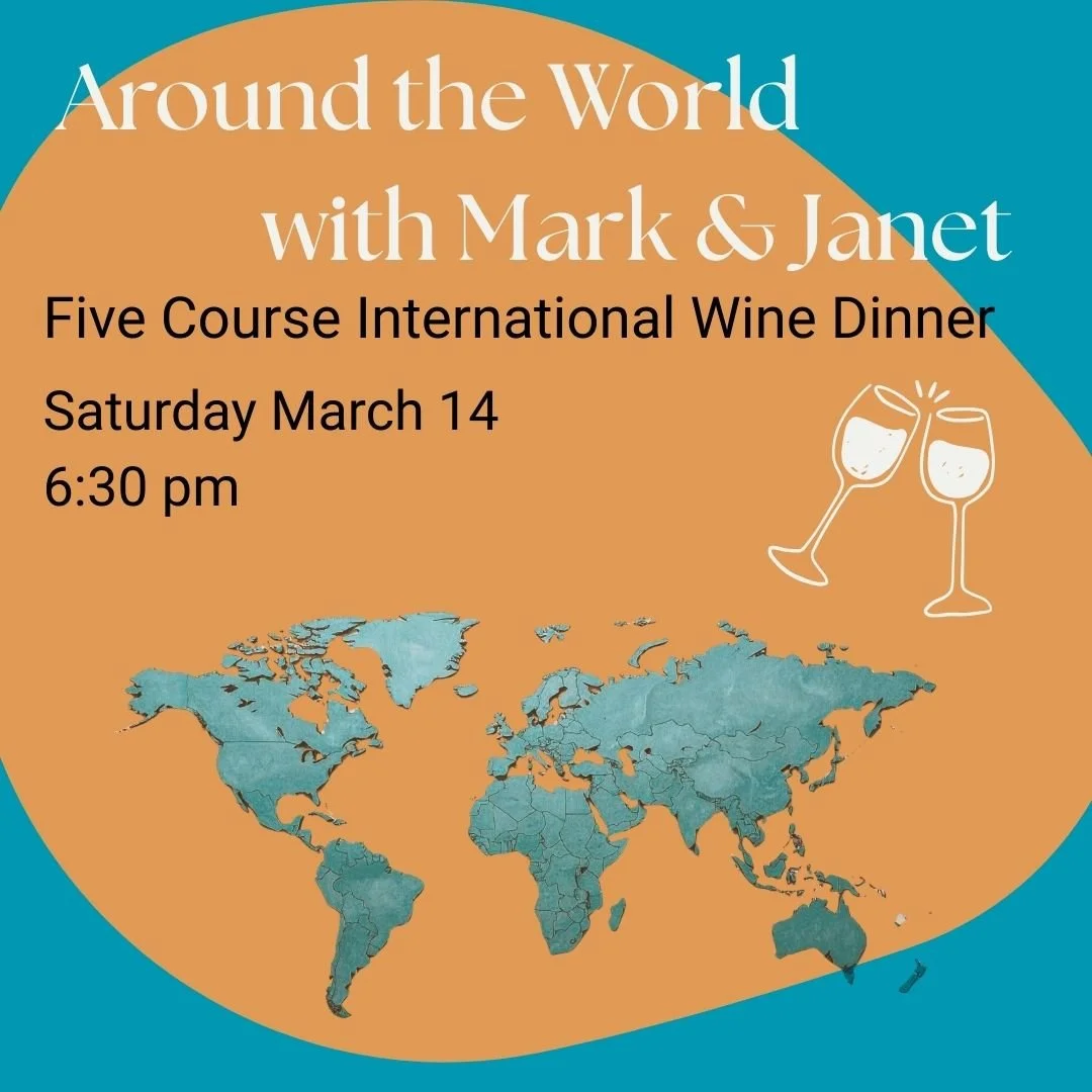 Join us for an international five course wine dinner prepared and served by our owners. You will enjoy dishes from the various spots that Mark & Janet have lived including the UK, Venezuela, Indonesia, California and Texas, all deliciously paired with Portree Cellars wines. Space is limited so don’t wait to sign up!